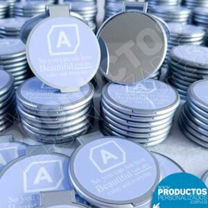 Espejos de Bolsillo con Herraje Metálico – 7,5 cms de diámetro – Personalizados (Venta mínima 6 unidades)