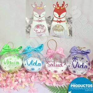 Bolitas navideñas con palabra y nieve (Venta mínima 6 unidades)
