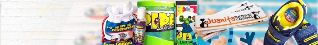 Marca Lápices, cuadernos, libros, termos, loncheras, zapatos, ropa…