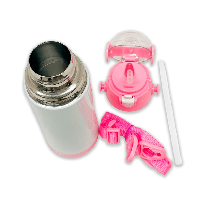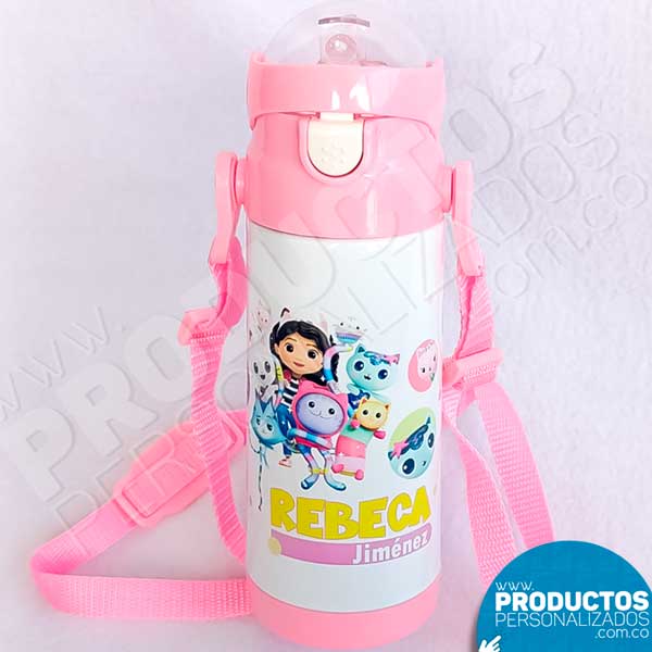 Hermosos termos personalizados con el motivo de la celebración y el nombre de cada invitado.