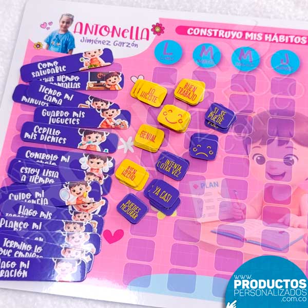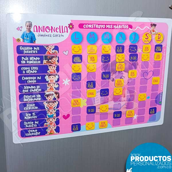 Tablero Imantado – Construyo Mis Hábitos para niñas de 7 a 12 años – Tamaño Mediano (21 x 29,5 cms)