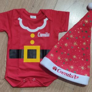 kit Bodie Papa Noel y Gorro de navidad Personalizado con el nombre del bebé